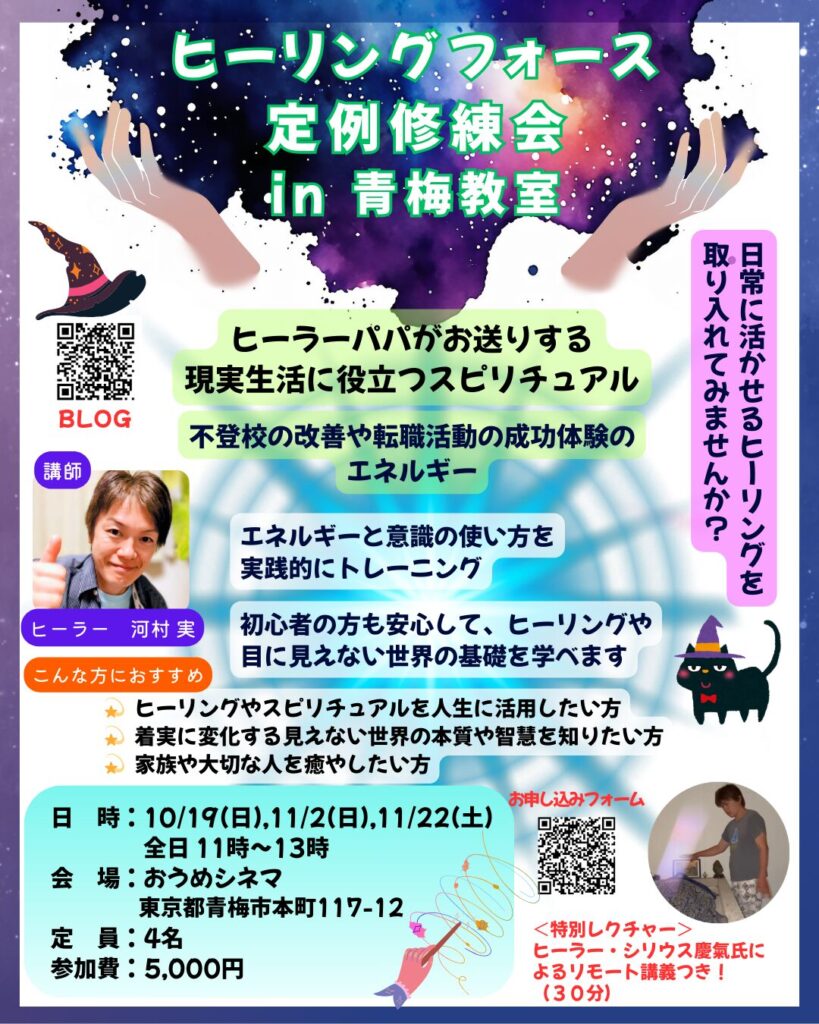 【10/19,11/2,11/22】ヒーリングフォース定例修練会 in 青梅教室
