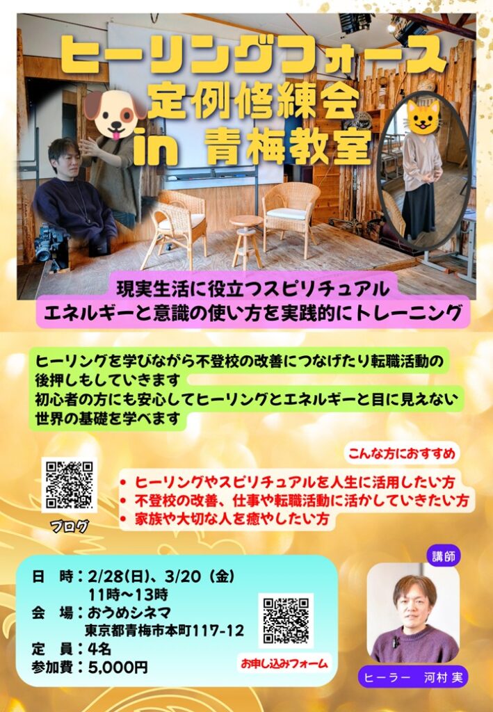 【3/20】ヒーリングフォース定例修練会 in 青梅教室